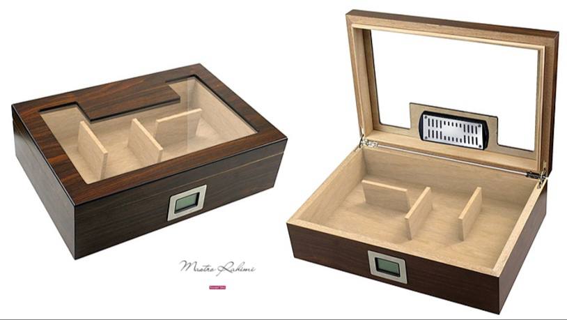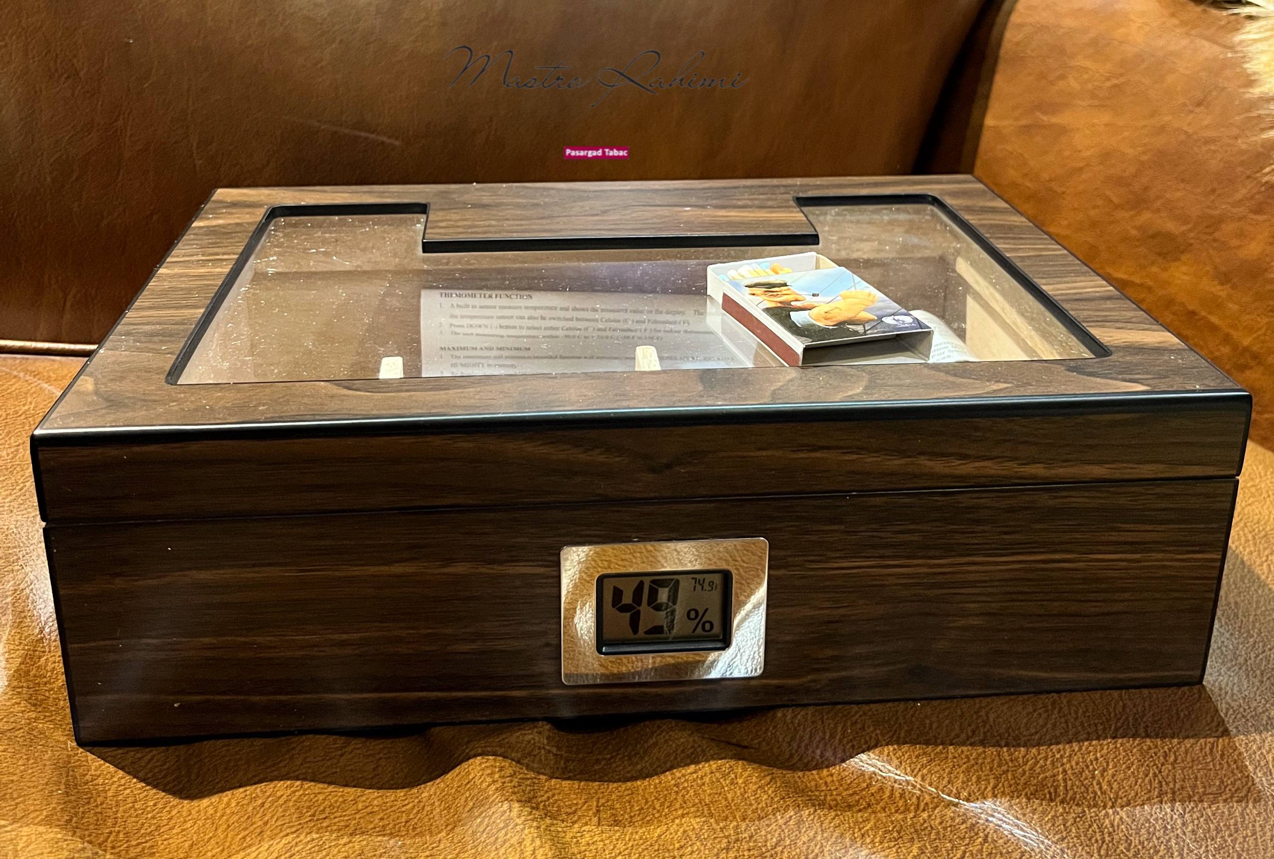 Lubinski – Scatola Umidificata GLASS Magnetic in Ironwood lucido con igrometro Digitale