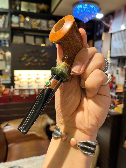 پیپ برابر گرید بالا با اجرای چند وجهی و شنک ترکیبی با رزین رنگی سنگین و نگین چشم نواز اجرا شده روی استم خاص پیپ