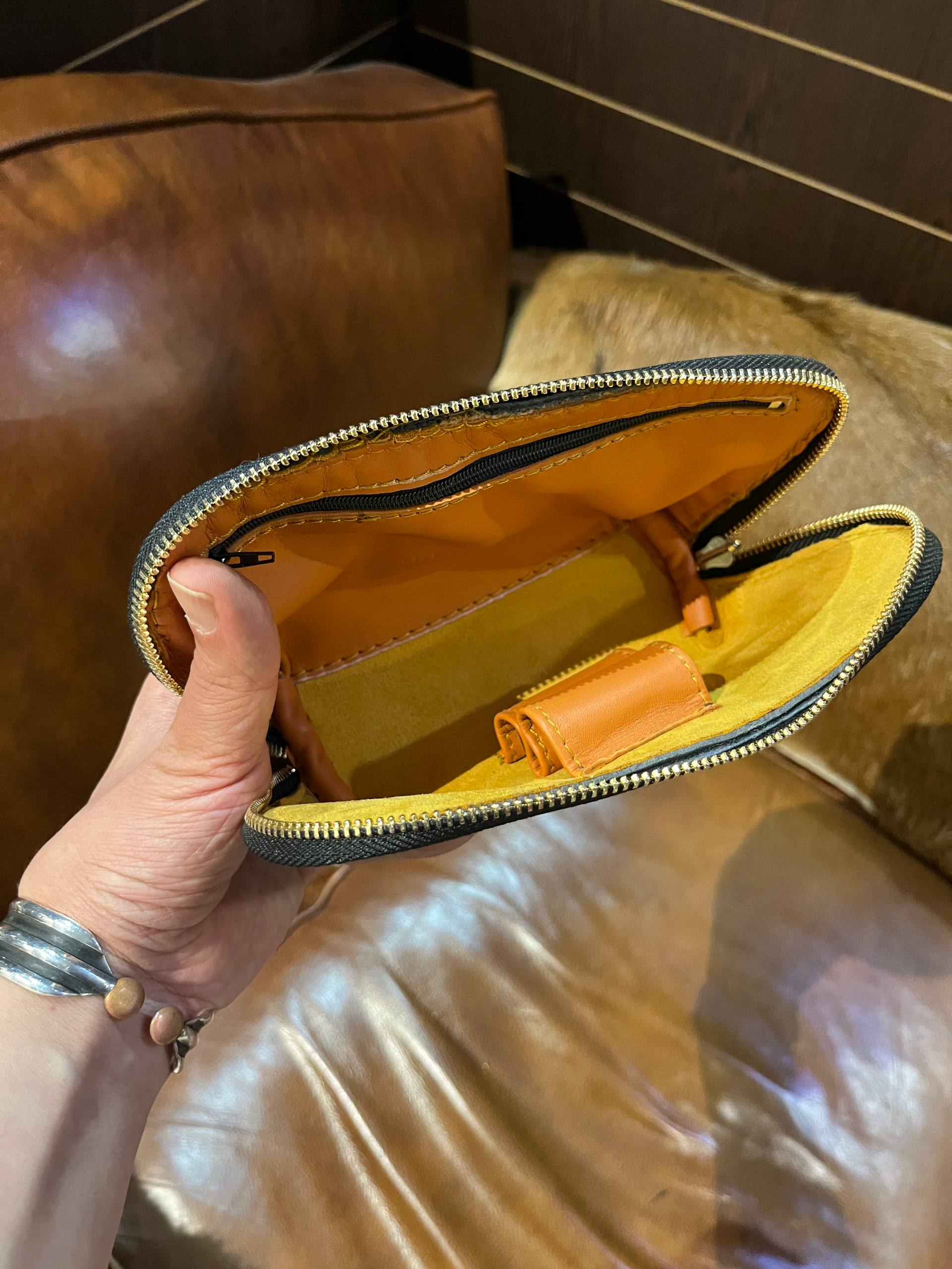کیف پیپ مناسب دو پیپ و داخل جای دو پیپ دارد و یک جیب زیپی هم داخل طراحی شده است
